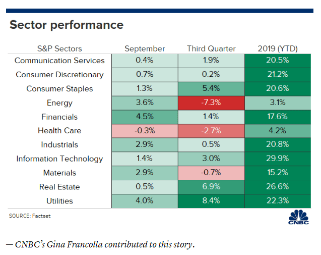 https://www.cnbc.com/2019/09/30/investors-rotated-into-these-top-sectors-in-september.html
